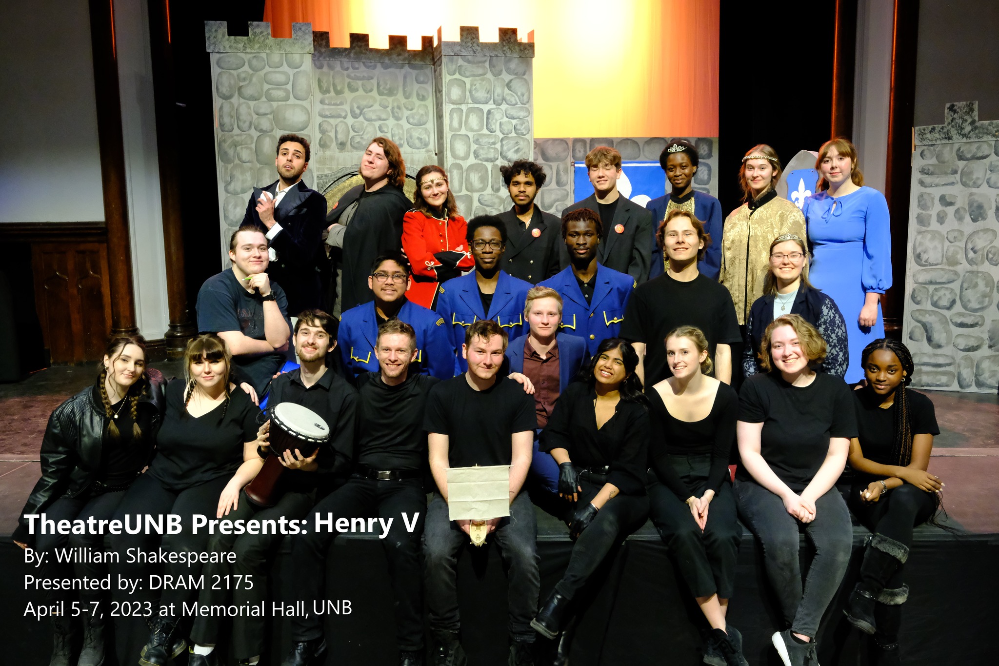 War is the point of contention in Theatre UNB’s final production of the year. The large cast of students enrolled in Drama 2175/3175 makes up the story of war and honour, and characters of nobility and peasantry. The nationalist spirit in Henry V is brought to life, with nuanced critiques of imperialist efforts of the past and the present. The director, Len Faulkenstein, thanks the cast for their diligent commitment and applauds their talent.