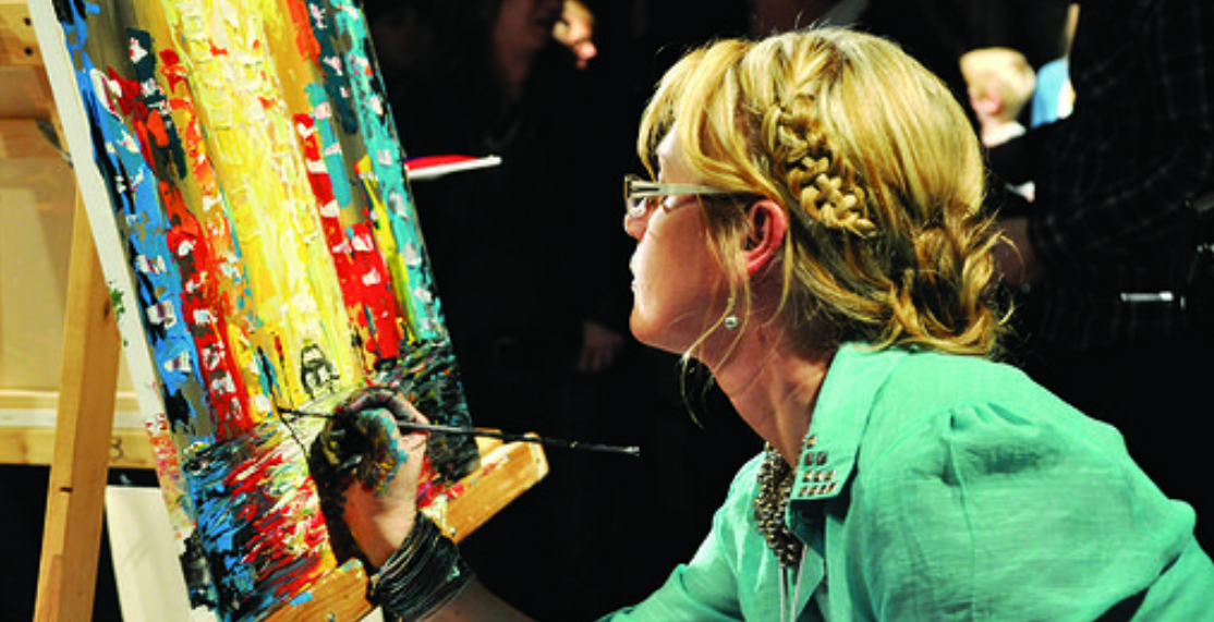 With the promotional posters promising flying paint, the Art Battle hosted by Charlotte Street Arts Centre in Fredericton on January 27th is pushing the boundary of visual art. Quiet galleries are inspiring on a Sunday afternoon, but what can be created on a Friday night with music and a buzzing audience?