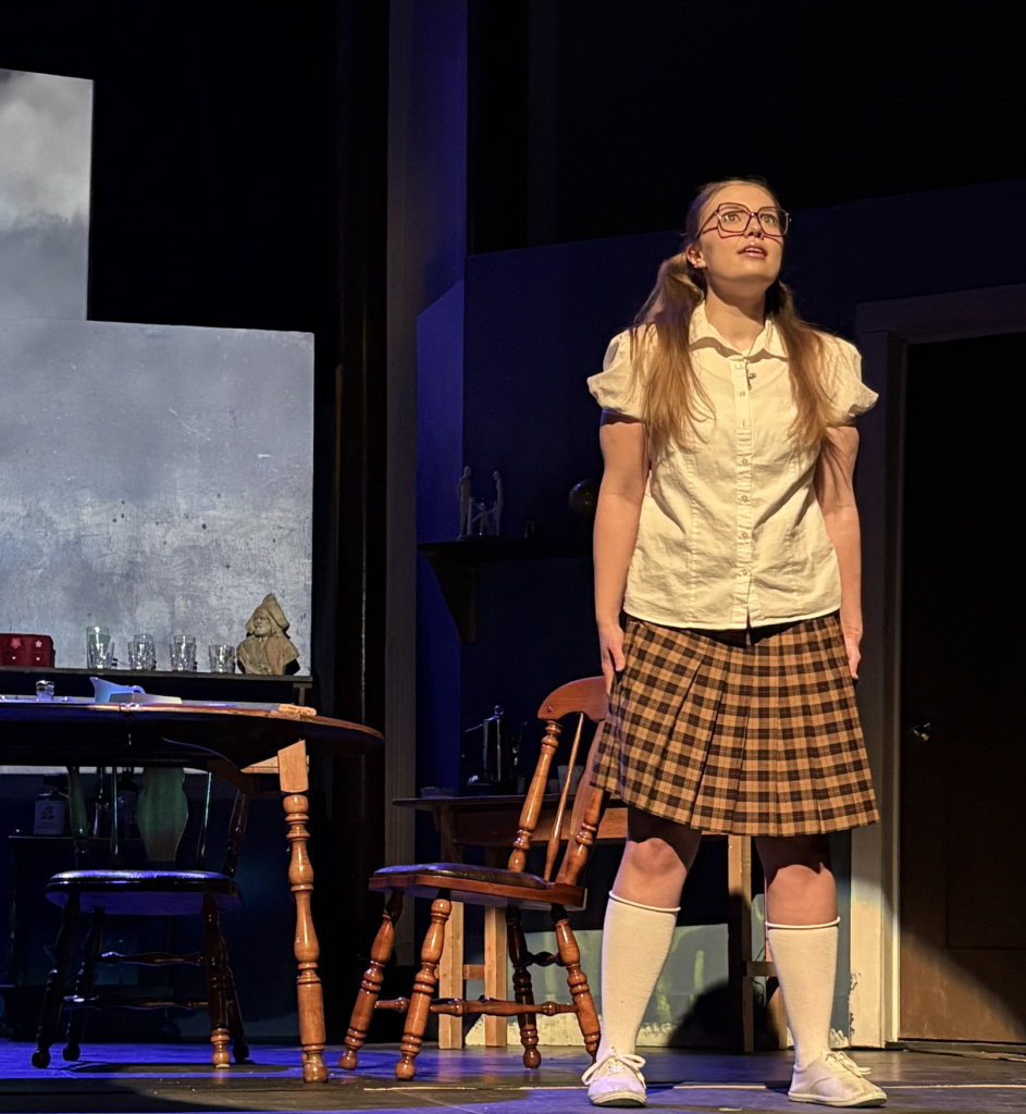 On February 4–7 2026, at 7:30p.m., Dr. Len Falkenstein directed his latest production at UNB’s Memorial Hall: Girl in the Goldfish Bowl by Morris Panych. The satirical comedy takes place back in 1962, and is centred around 10-year-old Iris, played by Ella Murphy. Iris believes the recent death of her pet goldfish has caused the demise of her parents’ marriage, and worse yet, the Cuban Missile Crisis to occur.