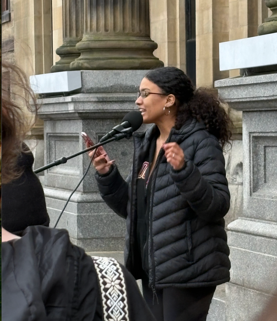 Mikhaela Boyd, a UNB student part of the protest organizing team, gave an incredible speech in regard to international students:
