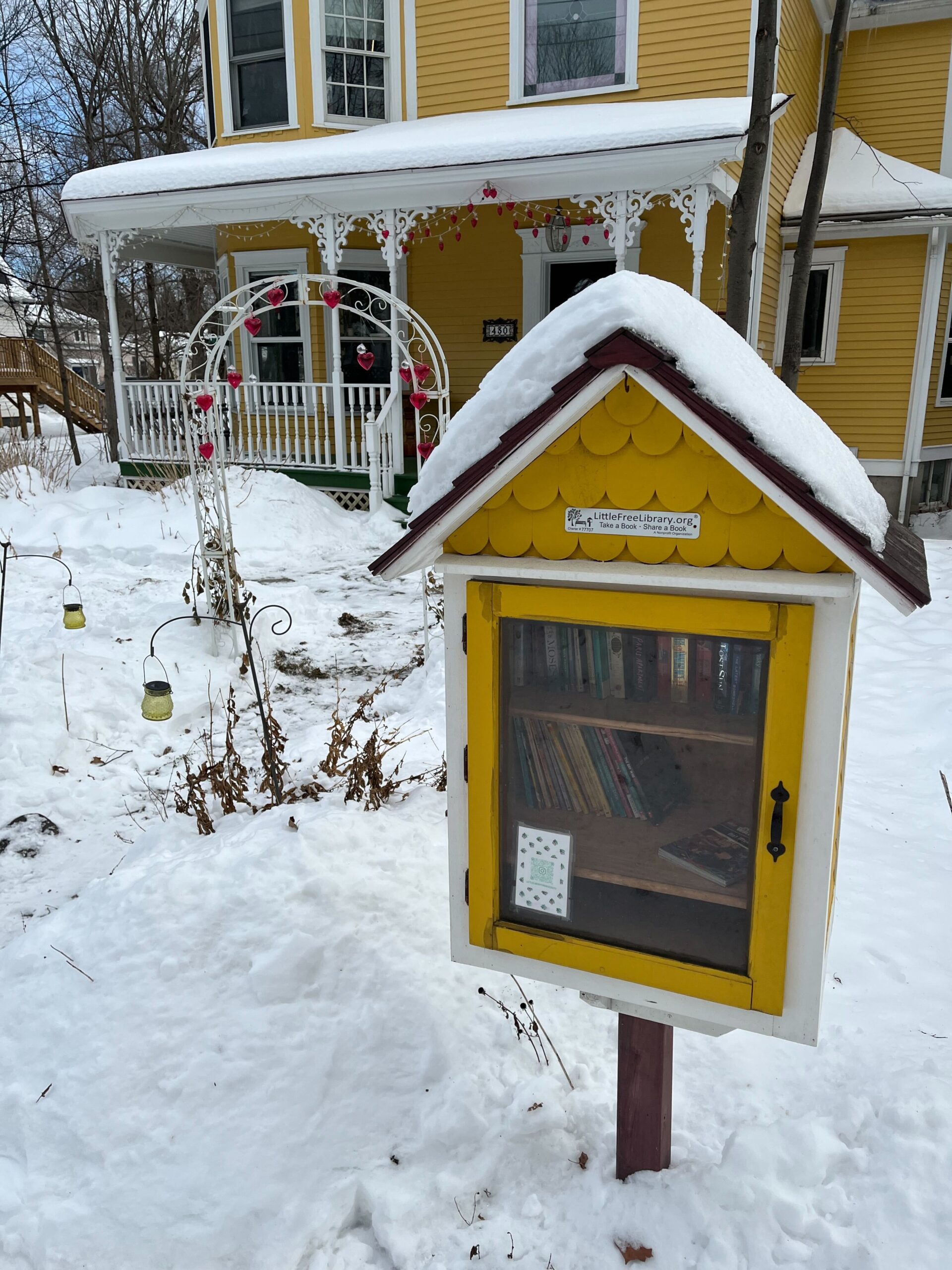 Library 2: The second Little Library was listed on LFL World Map under the name Julia Stewart, located at 653 Charlotte Street. I came to learn Julia Stewart was a beloved and awarded library director in Fredericton, who sadly passed away on November 16, 2024. Her Little Library still remains, ringing with her lifelong love for libraries.