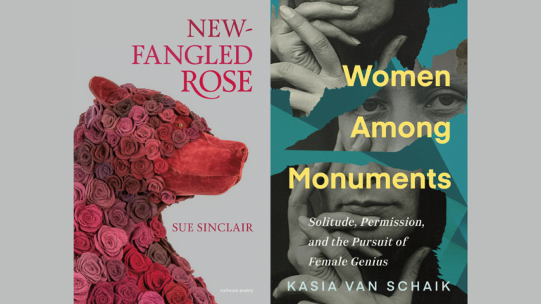 On March 26th, 2026, the Fredericton writing community celebrated UNB English Professors and co-chairs of the Creative Writing Department Kasia Van Schaik and Sue Sinclair’s newest books at Gallery 78. In a heritage building, surrounded by artwork, and with a view of the Wolastoq behind them, Van Schaik read from her new hybrid memoir and critical theory book Women Among Monuments: Solitude, Permission, and the Pursuit of Female Genius, while Sinclair read from her new collection of poetry New-Fangled Rose. Matthew Gwathmey, a fellow poet and professor of English and creative writing at UNB, hosted the event, and the audience was full of professors, students, and local writers. It was a full house of roughly 40 attendees, overflowing from the room and into the main hall.