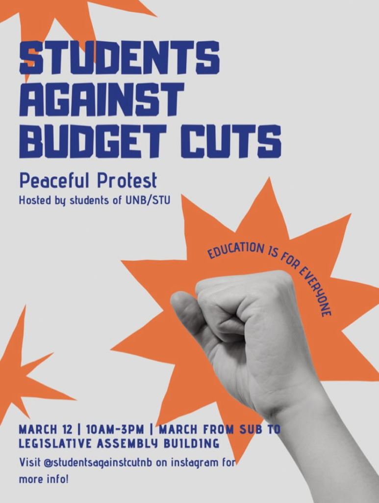 *Please note that the protest has been postponed until March 17th. Check @ studentsagainstcutnb on Instagram for updates. We currently assume the rest of the details on the below poster will continue as planned.